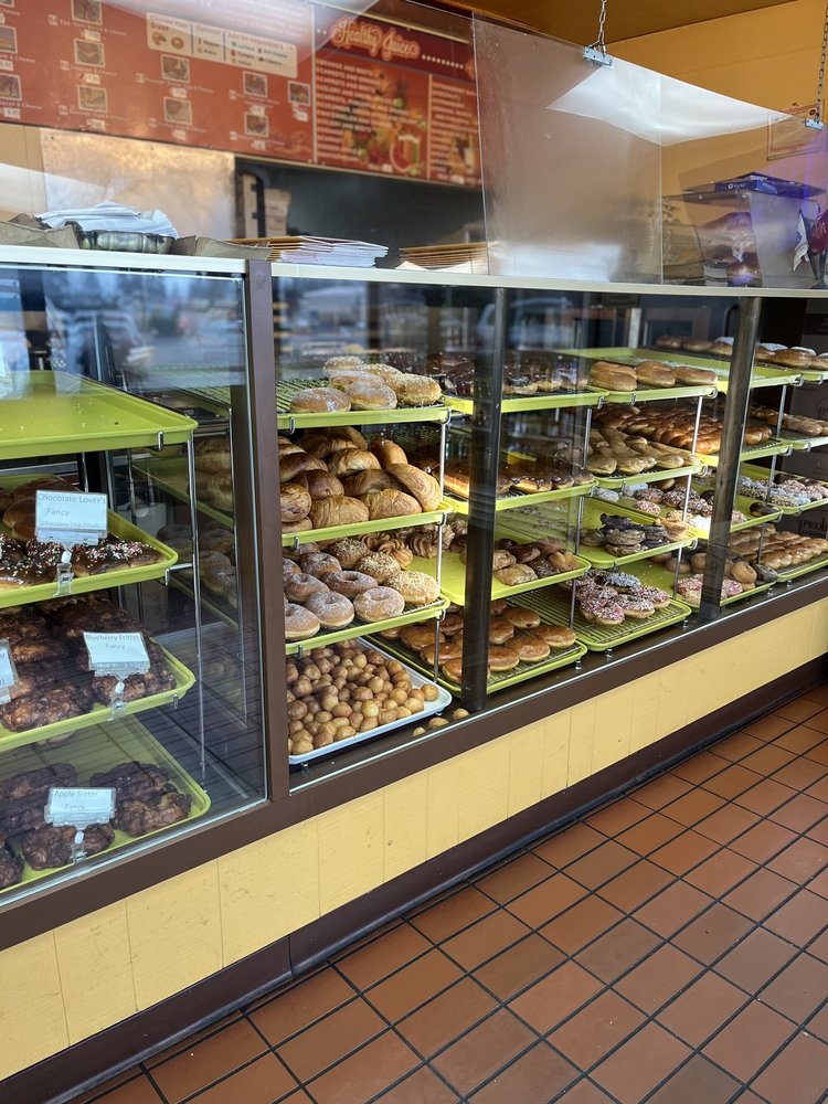 1 apple fritter, 1 cinnamon roll, 1 maple bar, 1 chocolate bar, 1 glaze twice, 1 cinnamon sugar twists, 1 glaze, 1 chocolate glaze, 1 sugar glaze, 1 old fashion, 2 cake.